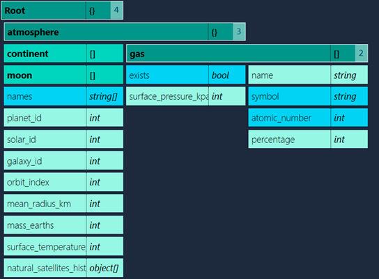 When the JSON value is null or an empty array, the type is noted as 'object' or 'object[]' (C#), 'null' or